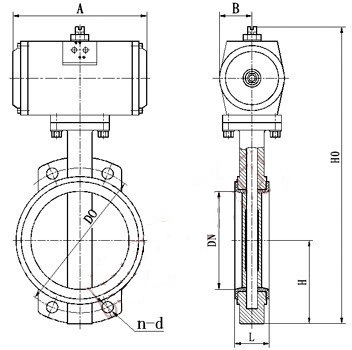上海蝶閥D671F氣動四氟蝶閥外形及連接尺寸: |